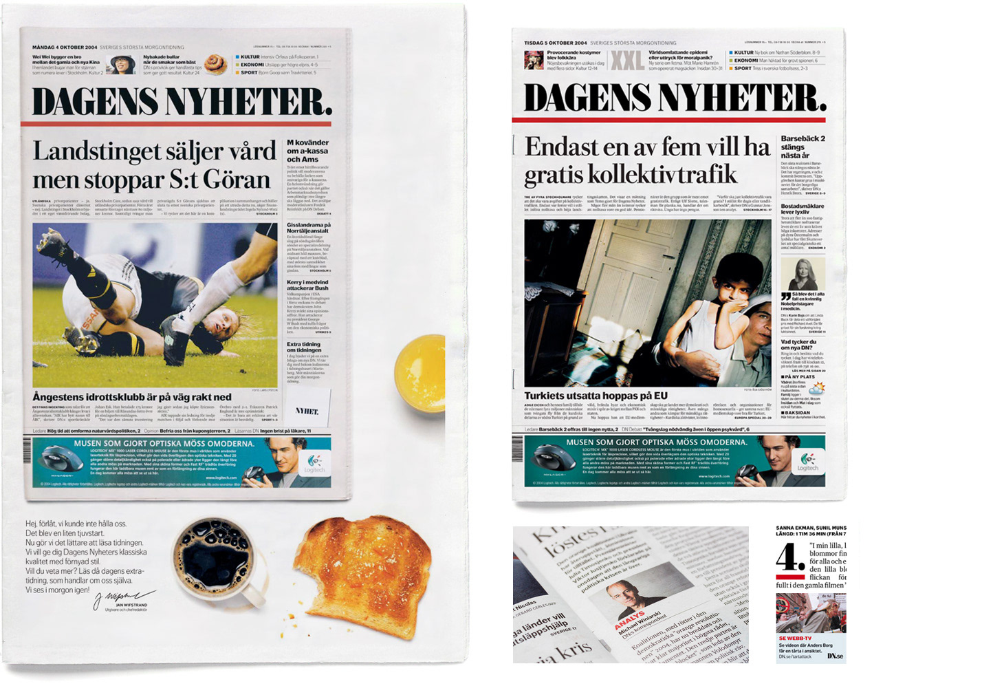 DN. Art direction 2000-2006. Above, last day before re-design from broadsheet to tabloid format. Photo: Funck/Alenäs