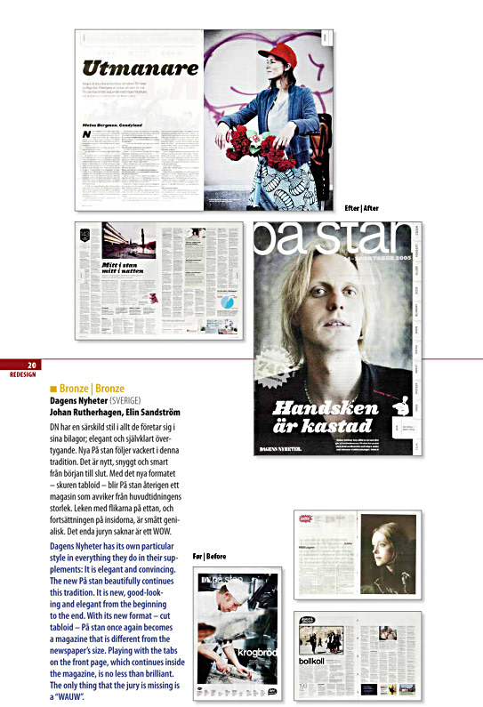 DN På stan. Art direction, redesign. Example above bronze medal award in Scandinavian Society of News Design.